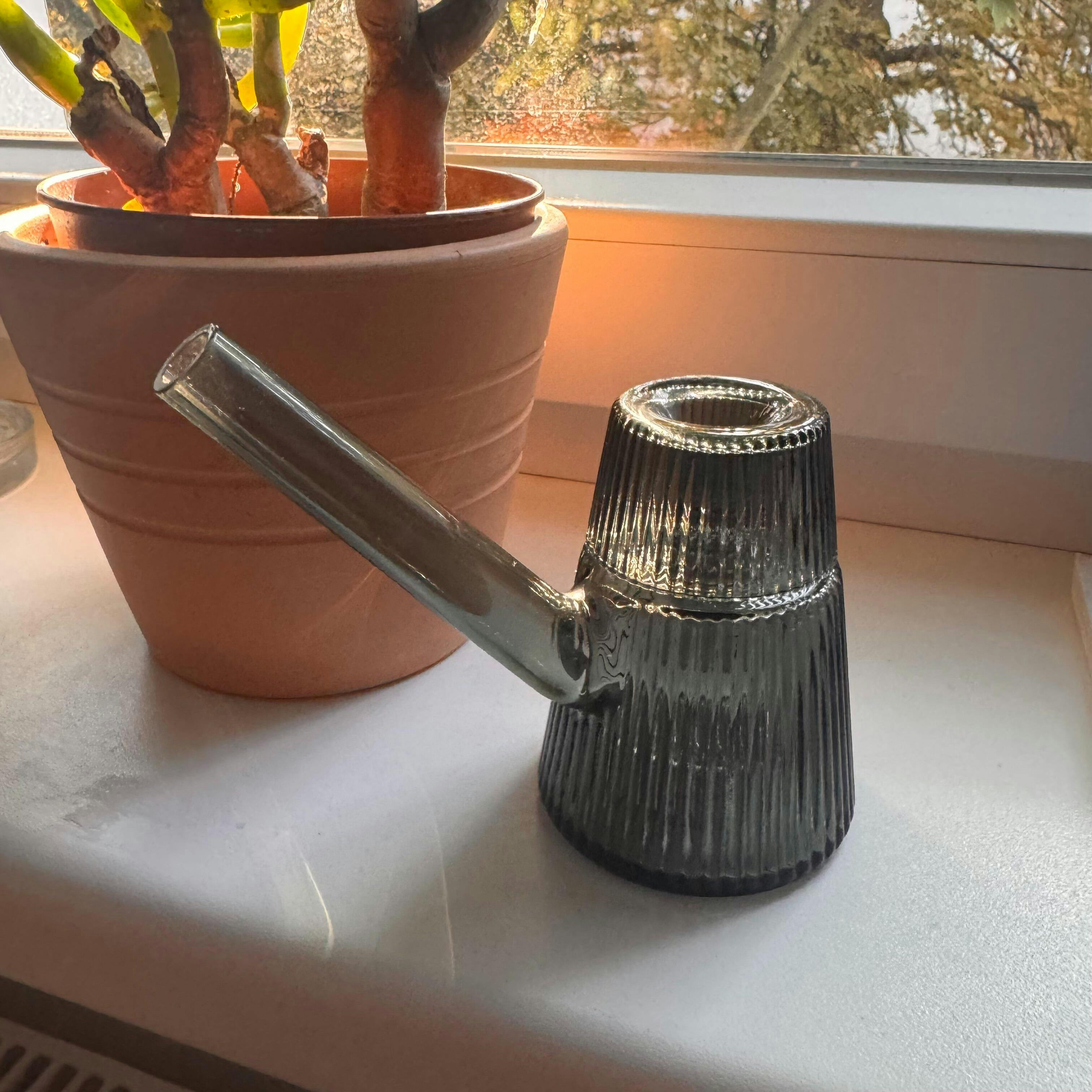 Mit seiner gerippten Glasstruktur und der skulpturalen Silhouette ist der Deco Bubbler weit mehr als ein Rauch-Tool. Er ist ein Blickfang, ein Statement, ein fester Bestandteil deiner Ästhetik. Dank wasserbasierter Filtration bietet er sanfte, ausgewogene Züge, während das angewinkelte Mundstück ein angenehmes, ergonomisches Erlebnis schafft.