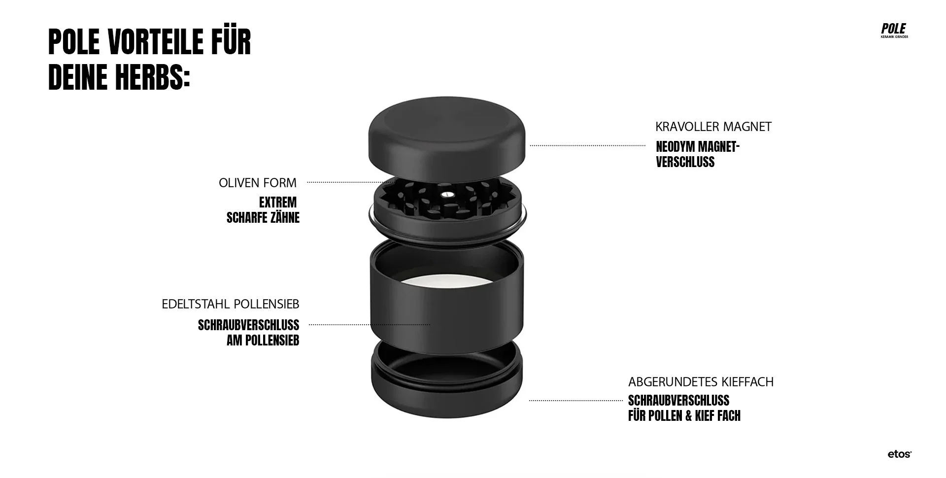 Der Fokus liegt auf Haptik, Robustheit und einem zeitlosen Look – damit etos Produkte auch nach langer Nutzung Teil eines hochwertigen Cannabis Lifestyle bleiben. -
