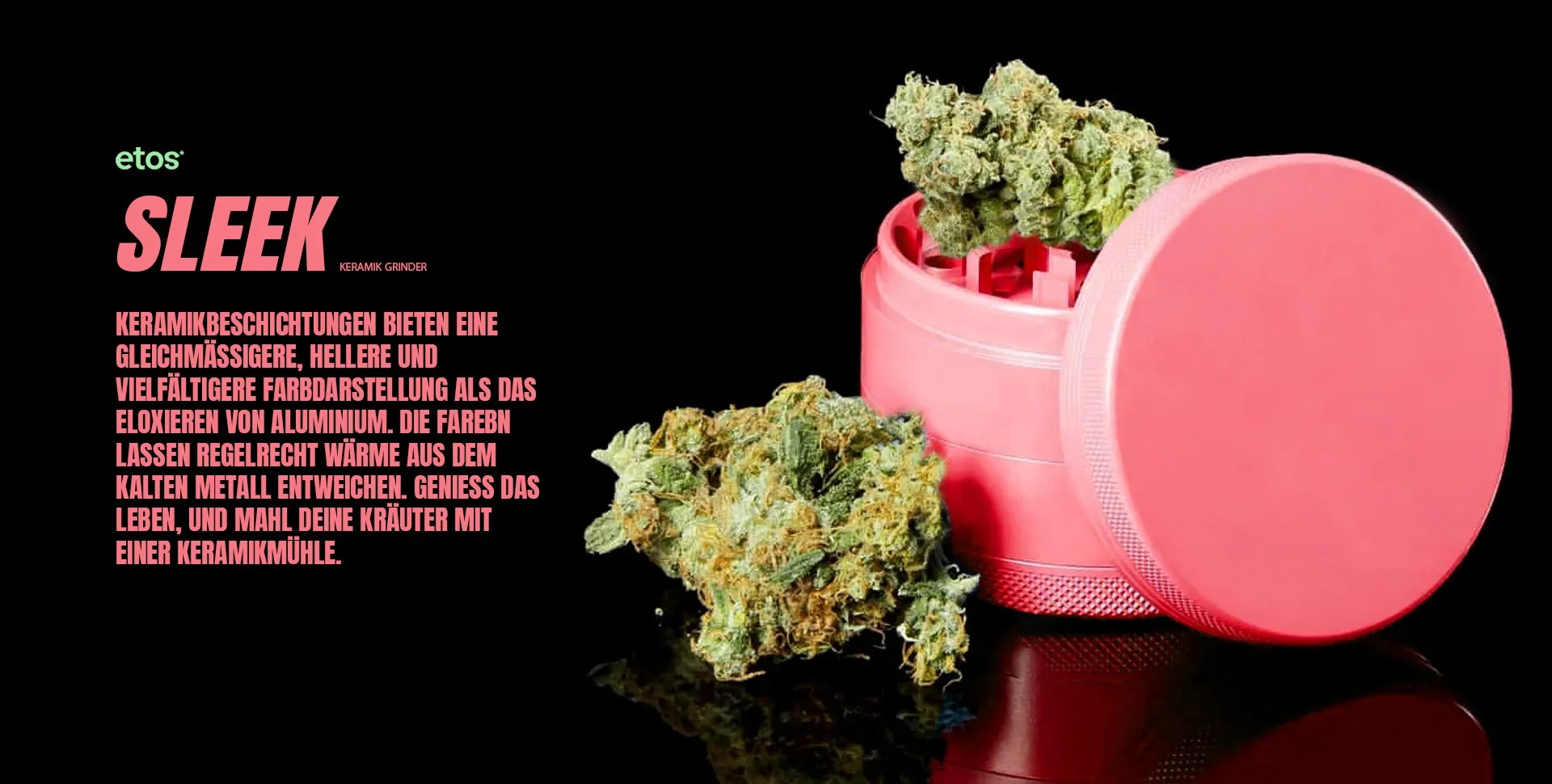 Der Fokus liegt auf Haptik, Robustheit und einem zeitlosen Look – damit etos Produkte auch nach langer Nutzung Teil eines hochwertigen Cannabis Lifestyle bleiben.