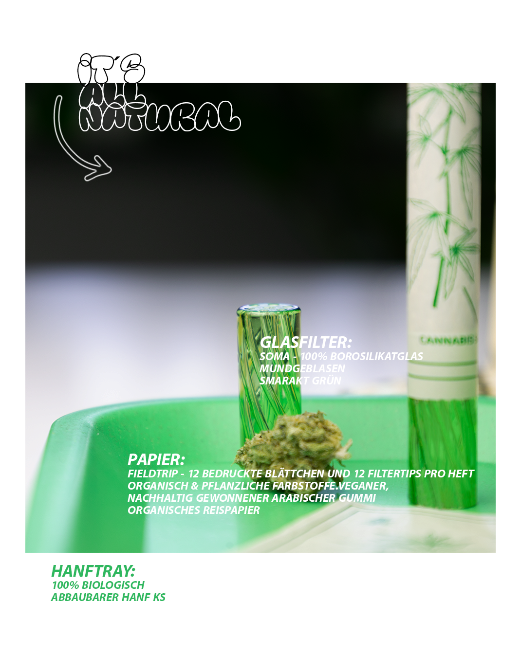 Ja. Fieldtrip setzt auf nachhaltige, organische Rohstoffe und eine verantwortungsvolle Produktion. Die Papers werden mit veganen, ungiftigen Druckfarben bedruckt, sind ungebleicht und darauf ausgelegt, Umwelt und Mensch gleichermaßen zu respektieren.