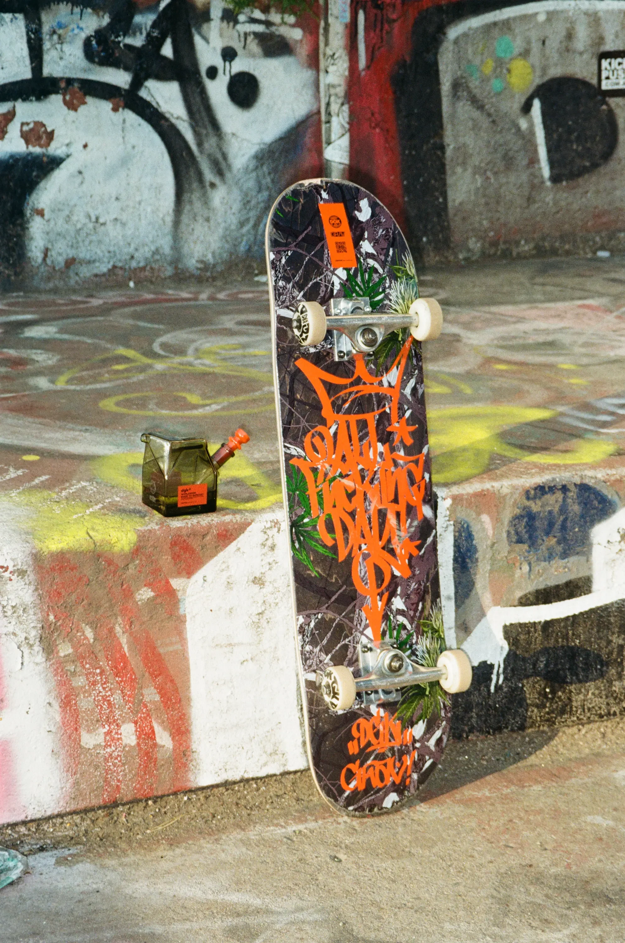 Der Colorway des GRAV x DGK Milk Carton Bubblers setzt auf starken Kontrast und klare Statements. Das tief anthrazitfarbene Glas verleiht dem Piece eine reduzierte, fast industrielle Anmutung und bildet die perfekte Bühne für die GRAV- und DGK-Logos. Die rote Bowl bricht bewusst mit der dunklen Basis, setzt einen kraftvollen Akzent und greift die visuelle Sprache von DGK auf. Zusammen entsteht ein selbstbewusster, cleaner Look, der die Kollaboration klar erkennbar macht, ohne überladen zu wirken.